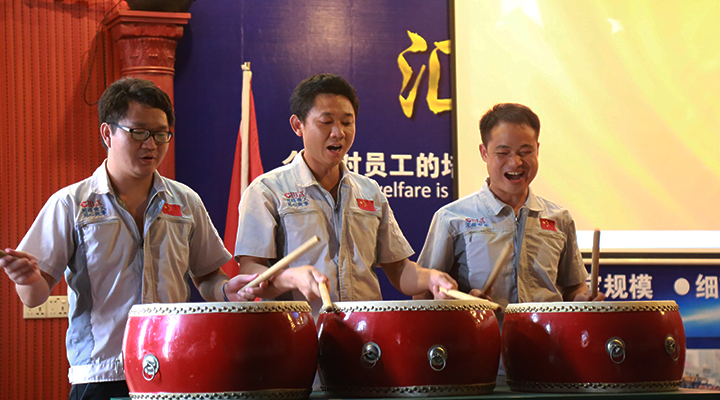 工匠職員代表敲響士氣鼓