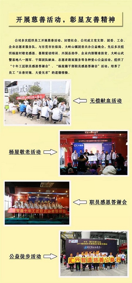 如果信念有顏色,那一定是中國(guó)紅!無償獻(xiàn)血是無私奉獻(xiàn)、救死扶傷的崇高行為,是我國(guó)血液事業(yè)發(fā)展的強(qiáng)大助力和保障。匯興智造作為東莞市首批10家“友善企業(yè)”之一,始終在堅(jiān)持以人為本,注重人文關(guān)懷的同時(shí),致力于將“友善”的價(jià)值觀、理念融入公司日?;顒?dòng)中,通過快樂工作,幸福生活的獨(dú)具特色的“友善文化”和“一個(gè)行業(yè) 一個(gè)家庭 一所學(xué)校 一支軍隊(duì)”的人文理念,把社會(huì)主義核心價(jià)值觀融入到員工思想教育工作之中;夯實(shí)“友善企業(yè)”基礎(chǔ)、打造“友善環(huán)境”陣地、構(gòu)建友善勞動(dòng)關(guān)系。在點(diǎn)點(diǎn)滴滴中融合、滲透,全方位落地生根,營(yíng)造和諧友善氛圍和人文環(huán)境,積極提升員工的幸福感和自豪感,讓員工在公司平臺(tái)上充分展現(xiàn)自我,實(shí)現(xiàn)自身價(jià)值,創(chuàng)享更加美好的生活。